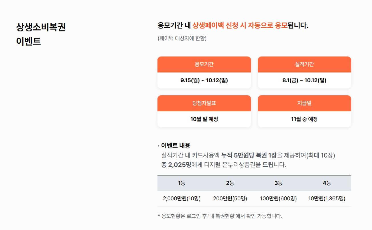 상세페이백을 신청하면 상생소비복권 이벤트도 자동으로 응모되니 참고하세요!
